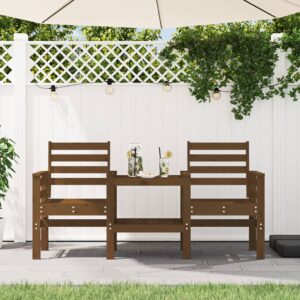 Banco de jardim 2 lugares com mesa pinho maciço castanho-mel