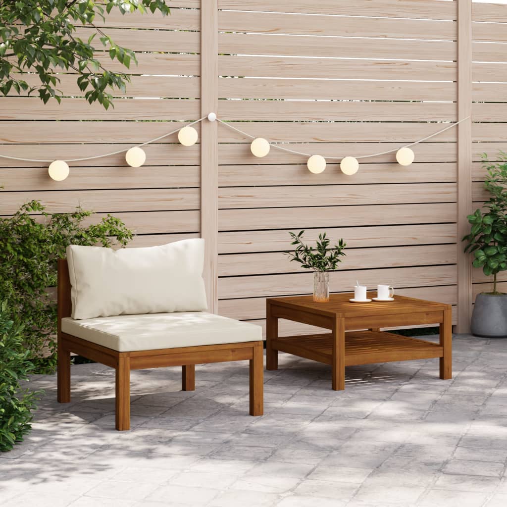 Feito em madeira de acácia maciça, o conjunto de sofás é forte, resistente e durável e o seu acabamento a óleo torna-o adequado para utilização no exterior. Os almofadões de assento e de encosto acolchoados proporcionam o máximo conforto de assento. O tampo resistente pode ser utilizado para colocar bebidas ou snacks. Pode combiná-lo com outros segmentos modulares disponíveis para criar as suas próprias configurações pessoais de um conjunto lounge de jardim!
