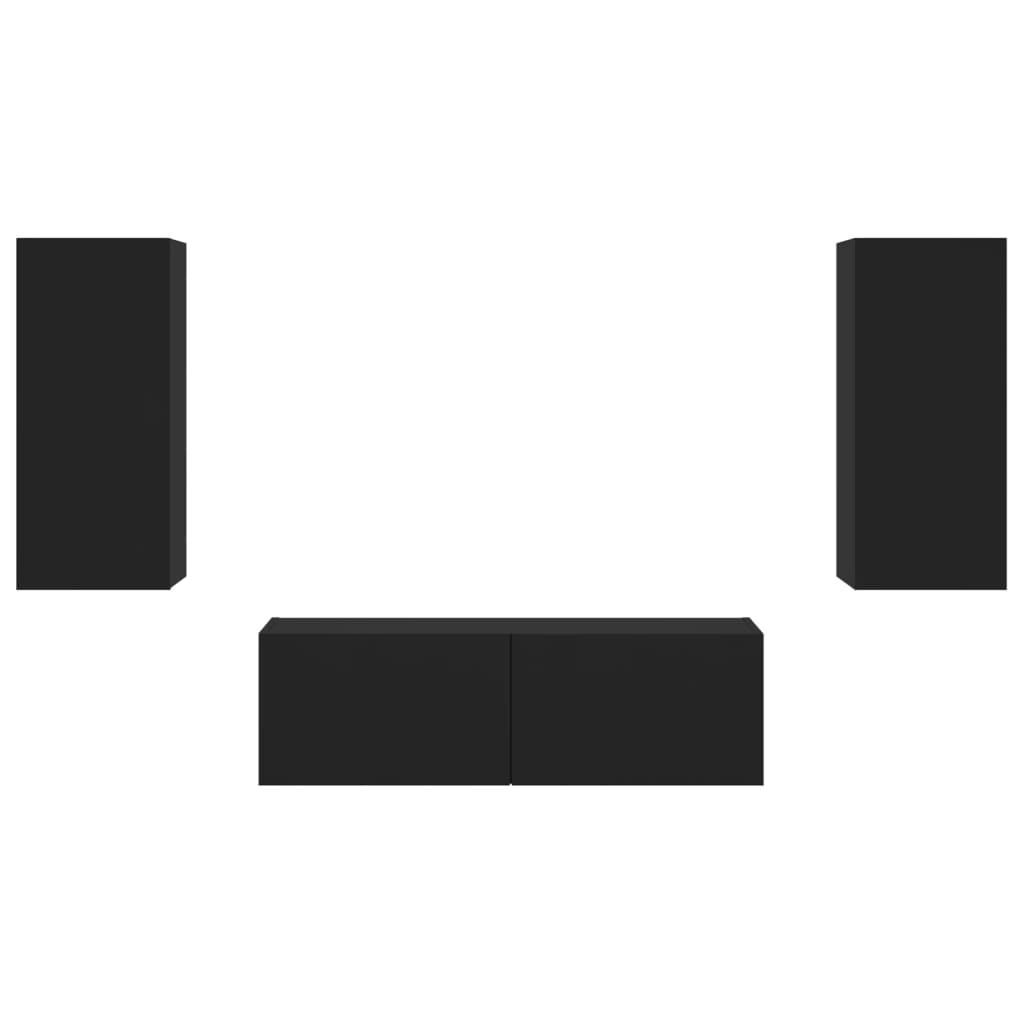 3 pcs móveis de parede para TV com luzes LED preto