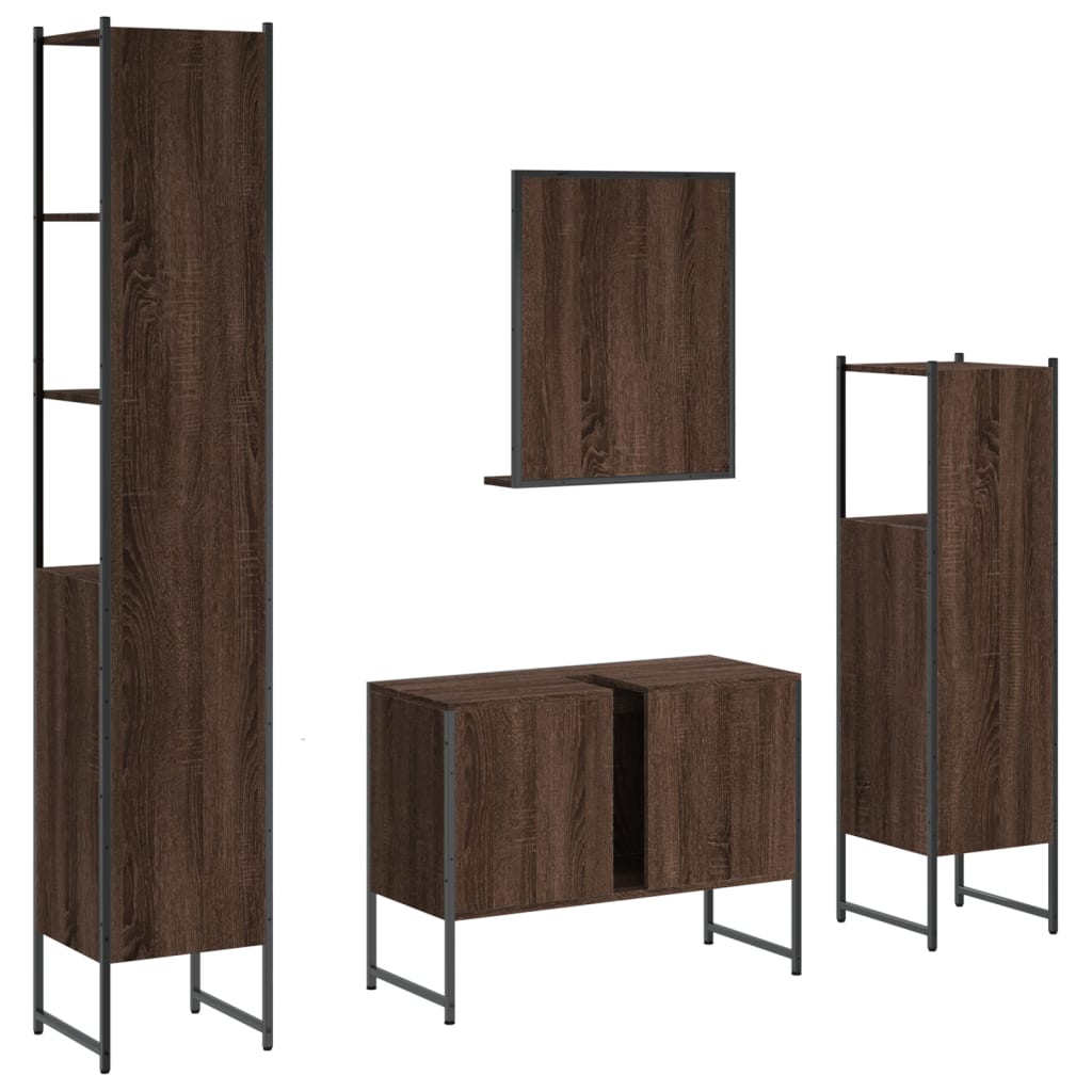 4 pcs conj. móveis wc derivados de madeira carvalho castanho