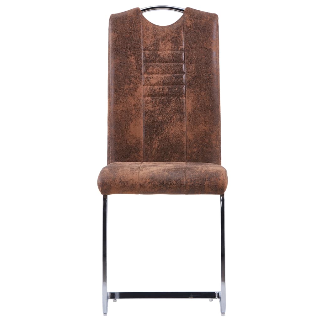 A mesa possui um tampo de vidro temperado liso que é fácil de limpar apenas com um pano húmido. A estrutura metálica revestida a pó contribui para a sua construção sólida, oferecendo uma excelente estabilidade e durabilidade. As cadeiras foram estofadas com camurça artificial macia e densamente acolchoadas, para fornecer o máximo conforto. O design ergonómico torna a cadeira de jantar extremamente confortável. Graças à estrutura de aço cromado, as cadeiras são consideravelmente robustas e estáveis. Equipadas com uma pega no encosto, as cadeiras de sala de jantar são convenientes e fáceis de mover. Este conjunto de jantar é fácil de montar.