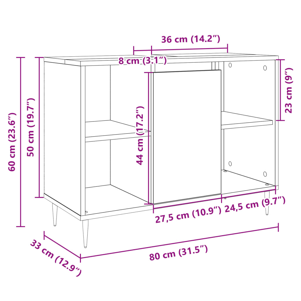 - Dimensões gerais: 80 x 33 x 60 cm (L x P x A)