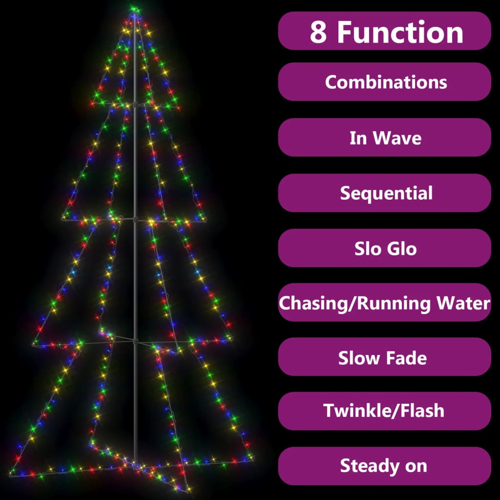 As luzes consistem em 360 LEDs que são muito eficientes em termos enérgicos e emitem uma luz brilhante. Concebida com 8 níveis diferentes de iluminação: uma combinação de todos os efeitos, brilho lento, cintilação/flash, em onda, perseguição/água corrente, sequencial, constante e desvanecimento lento. Fica muito bonita iluminada e cria uma atmosfera natalícia mágica. Será um verdadeiro destaque, especialmente à noite, e também serve como uma fonte aconchegante de luz ambiente. A árvore em cone independente pode ser fixada no solo com facilidade e segurança utilizando-se os materiais de montagem incluídos.