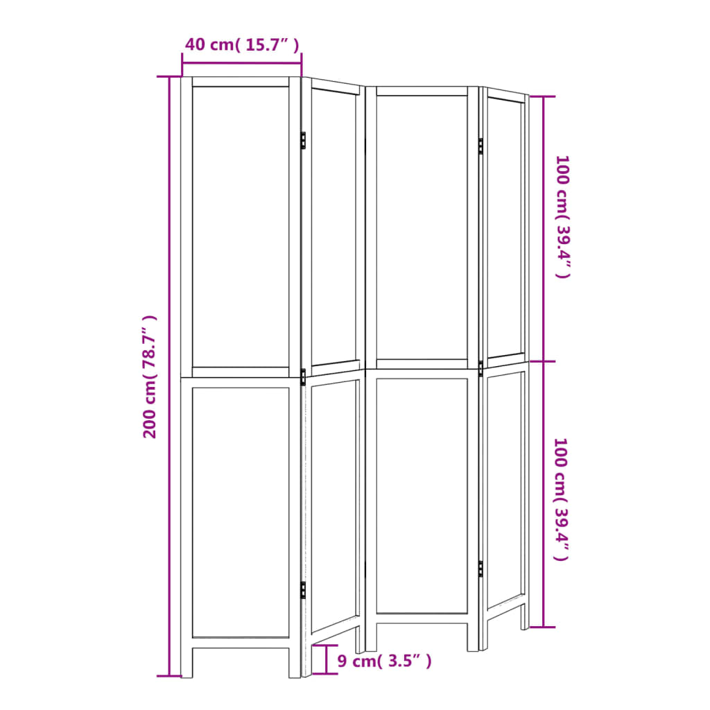 - Flexível e fácil de dobrar: cada painel está interligado com 3 dobradiças metálicas e os painéis superior e inferior estão interligados com dobradiças 2 em 1 ocultas. Assim, o biombo pode ser facilmente dobrado de acordo com as suas necessidades de poupança de espaço.