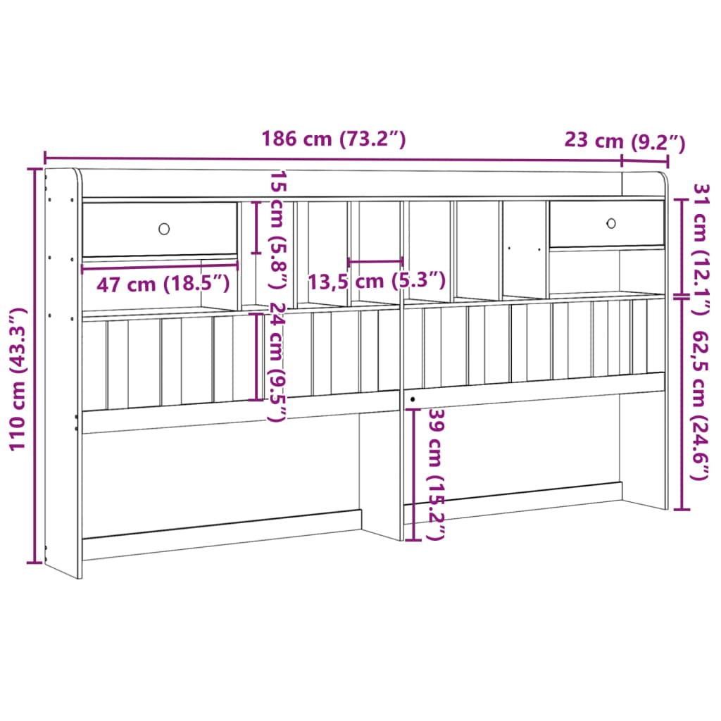 - Amplo espaço de arrumação: esta elegante cabeceira apresenta 6 convenientes compartimentos e 2 gavetas, oferecendo um amplo espaço de arrumação para manter os seus artigos essenciais ao alcance.