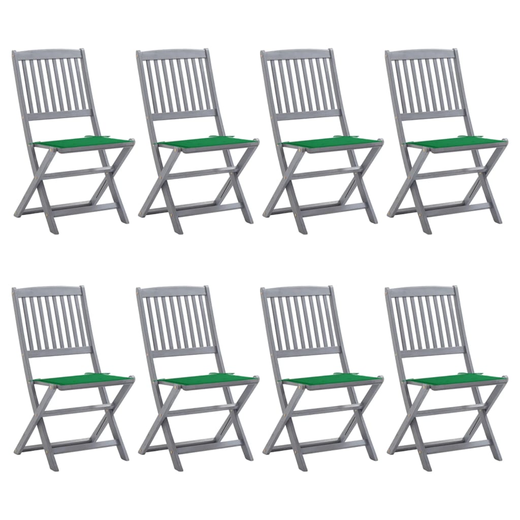 Estas cadeiras de jantar são feitas em madeira de acácia maciça, uma madeira tropical, tornando-as resistentes às intempéries e muito duráveis. A madeira de acácia maciça possui força para suportar o peso e o desgaste causado pelo tempo. A superfície cinzenta lavada é fácil de limpar com um pano húmido. As cadeiras podem ser dobradas para economizar espaço quando não estiverem a ser utilizadas. Os almofadões incluídos proporcionam um conforto adicional enquanto estiver a relaxar ou a jantar. Cada almofadão possui dois conjuntos de tiras para os poder fixar bem às cadeiras.