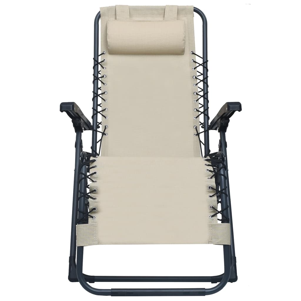 As cadeiras de jardim possuem uma estrutura de aço e um assento e encosto em textilene fácil de limpar e resistente às intempéries, para as poder utilizar durante muitos anos. O encosto de cabeça acolchoado é macio e confortável. Como as cadeiras são leves, podem ser movidas facilmente e são dobráveis para economizar espaço.