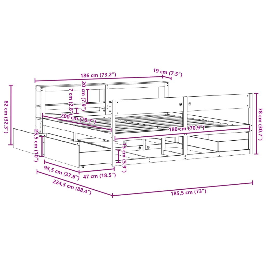 • Tamanho adequado do colchão: 180 x 200 cm (L x C) (colchão não incluído)