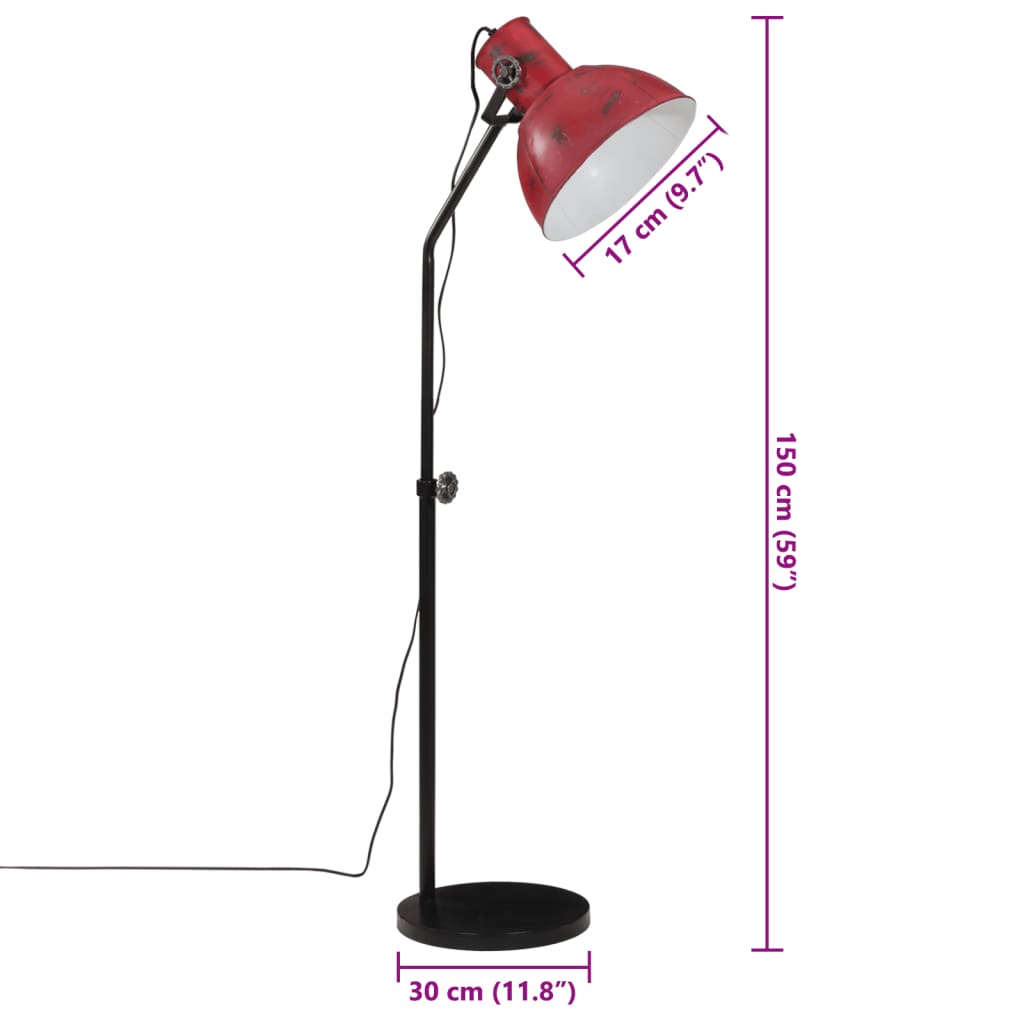 Candeeiro de pé 25 W 30x30x90-150 cm E27 vermelho desgastado
