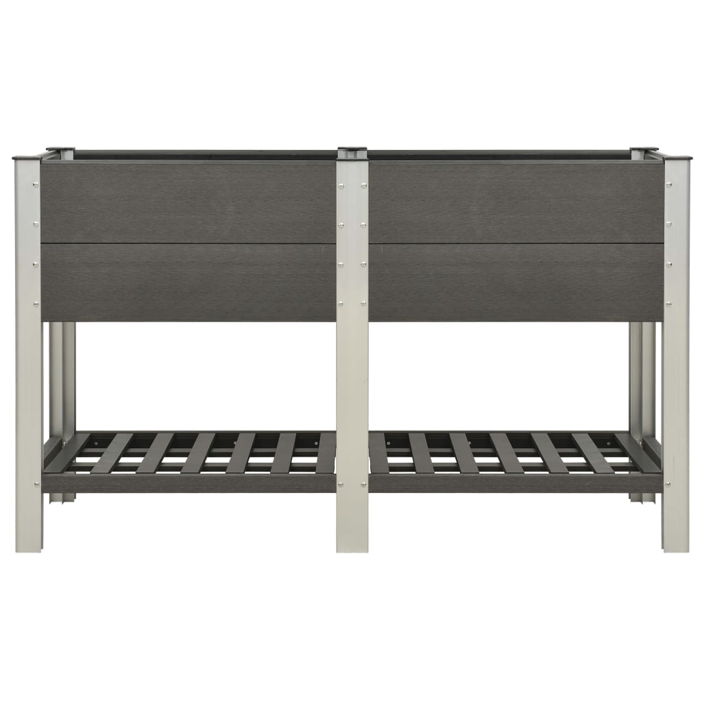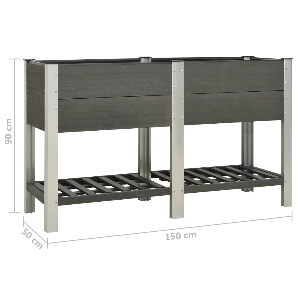 O vaso é feito em composto de madeira-plástica, tornando-o durável, resistente às intempéries e adequado para utilização ao ar livre. O vaso de jardim é adequado para acomodar uma grande quantidade de terra e oferece um amplo espaço para suas plantas, vegetais, ervas e flores. O fundo aberto oferece uma ótima ventilação. A prateleira oferece ainda um amplo espaço de arrumação adicional para vasos e ferramentas.