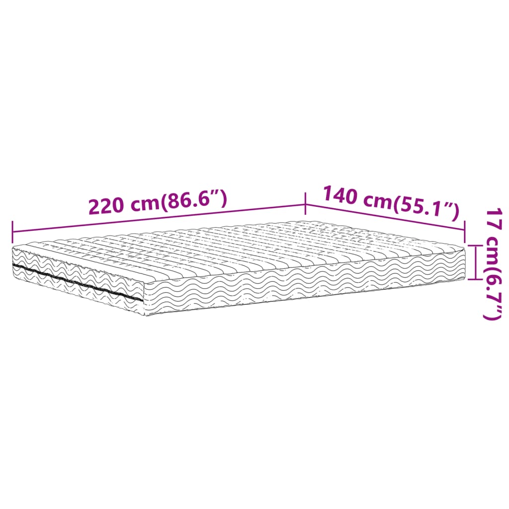 - Dimensões gerais: 140 x 220 x 17 cm (L x C x E)