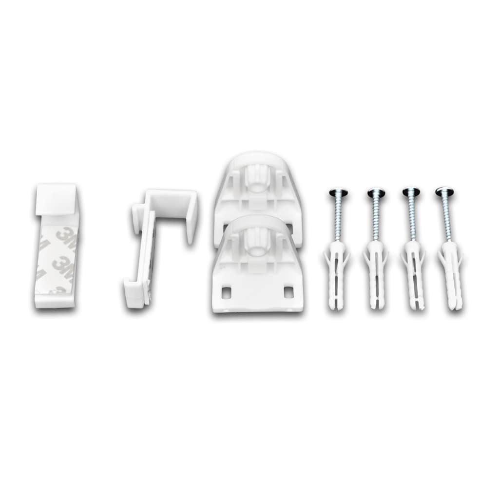 A entrega inclui 1 x 100 cm trilho superior PVC, 1 x 100 cm trilho superior de alumínio, 100% poliéstercamada termoplástica prateada, 2 x suportes, 2 x ganchos, 1 x cadeia de bola de plástico, 4 x parafuso e 4 x conectores de parede.