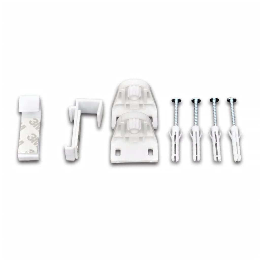 A entrrega inclui 1 x 60 cm trilho superior PVC, 1 x 60 cm trilho superior de alumínio, 100% poliéstercamada termoplástica prateada, 2 x suportes, 2 x ganchos, 1 x cadeia de bola de plástico, 4 x parafuso e 4 x conectores de parede.