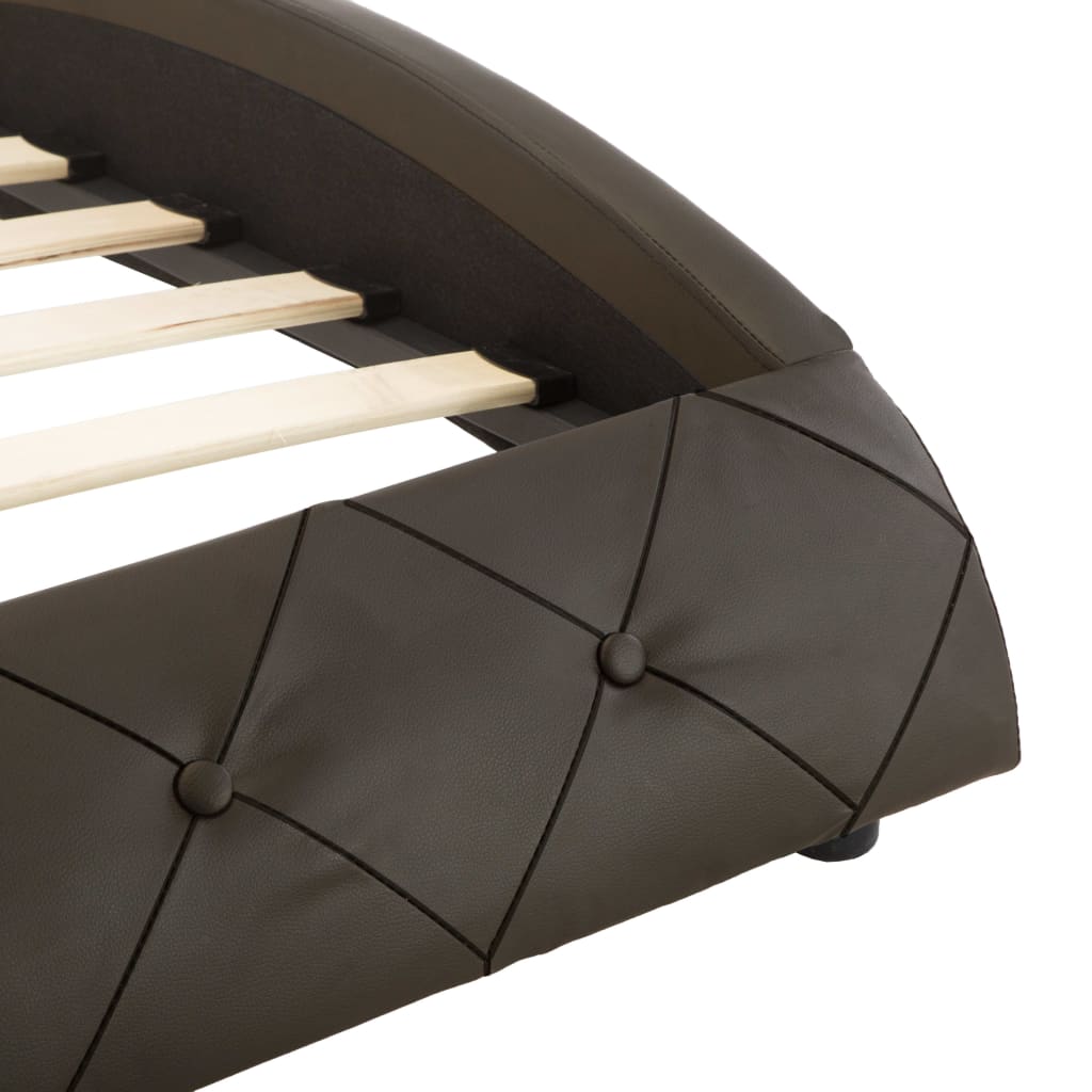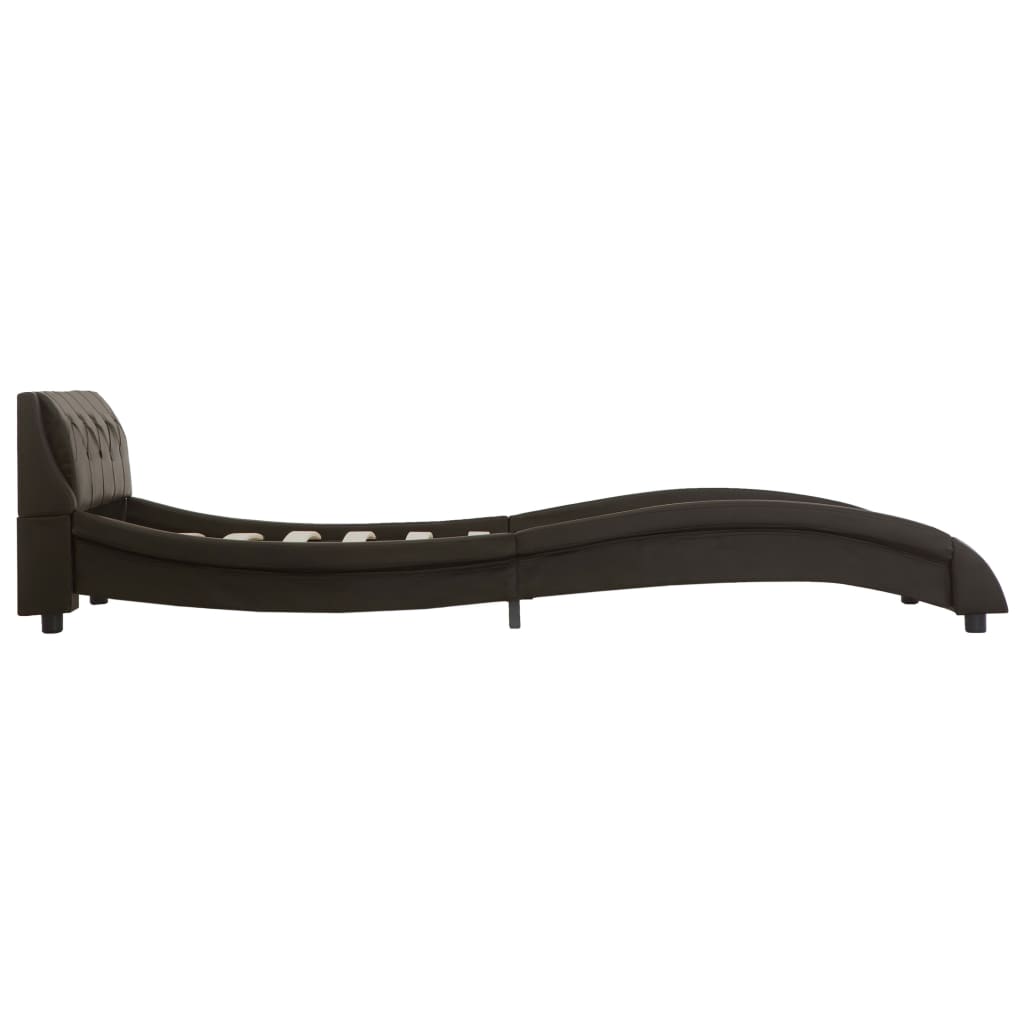 Distinguida por possuir um design ondulado simples e intemporal, a estrutura da cama acrescenta um toque de charme elegante à decoração do seu quarto. A estrutura de aço revestido a pó e as ripas de madeira aumentam a robustez e a durabilidade da cama. Estofada em couro artificial durável e fácil de limpar, a cama exala um aspeto convidativo. A cama estofada é adequada para um colchão de 90 x 200 cm.