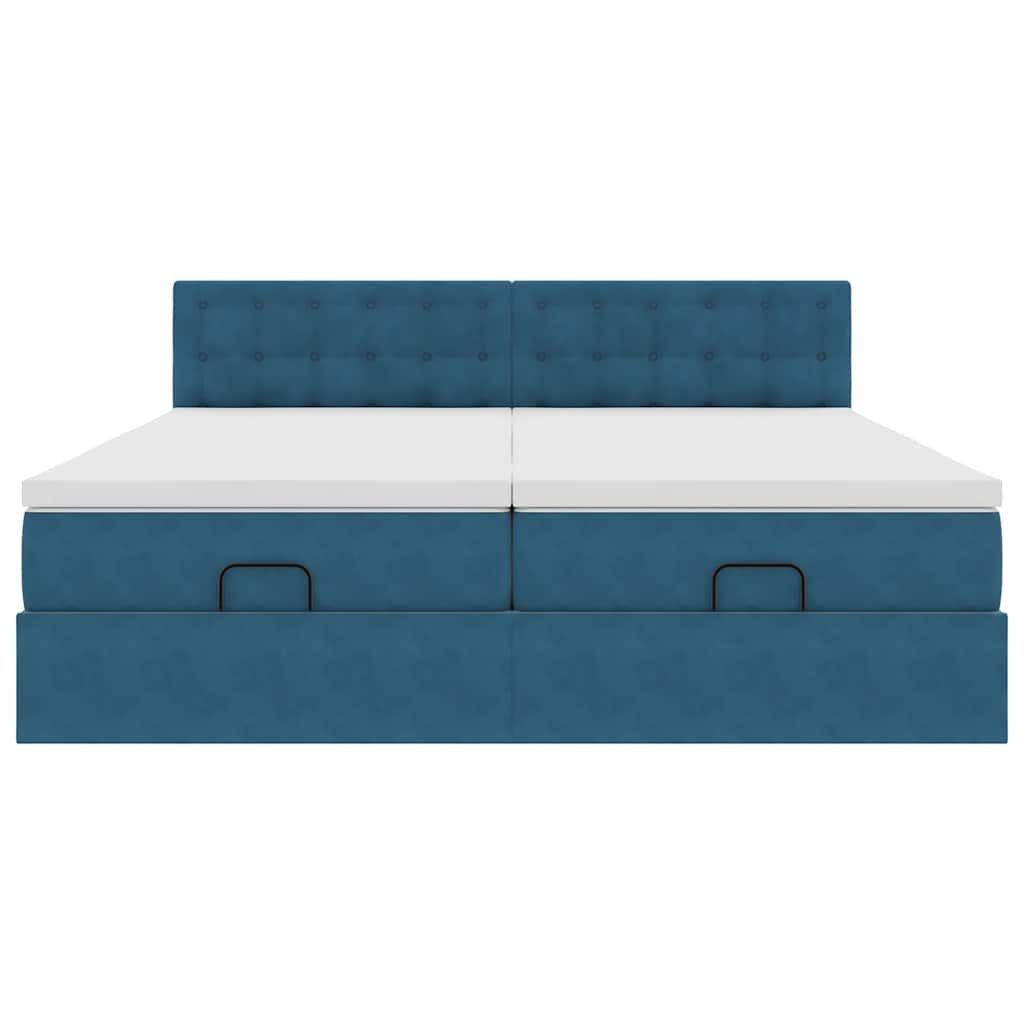 Estrutura de cama otomana com colchão azul escuro Veludo