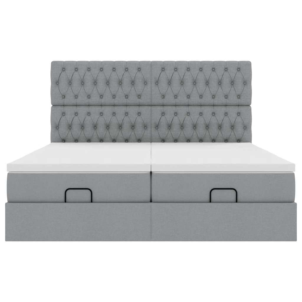 Estrutura de cama otomana com colchões tecido cinzento claro