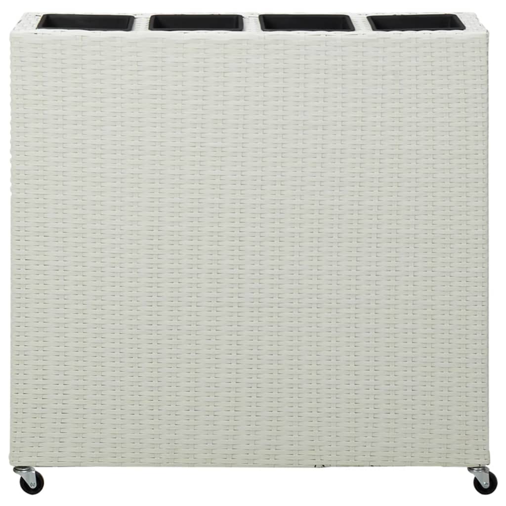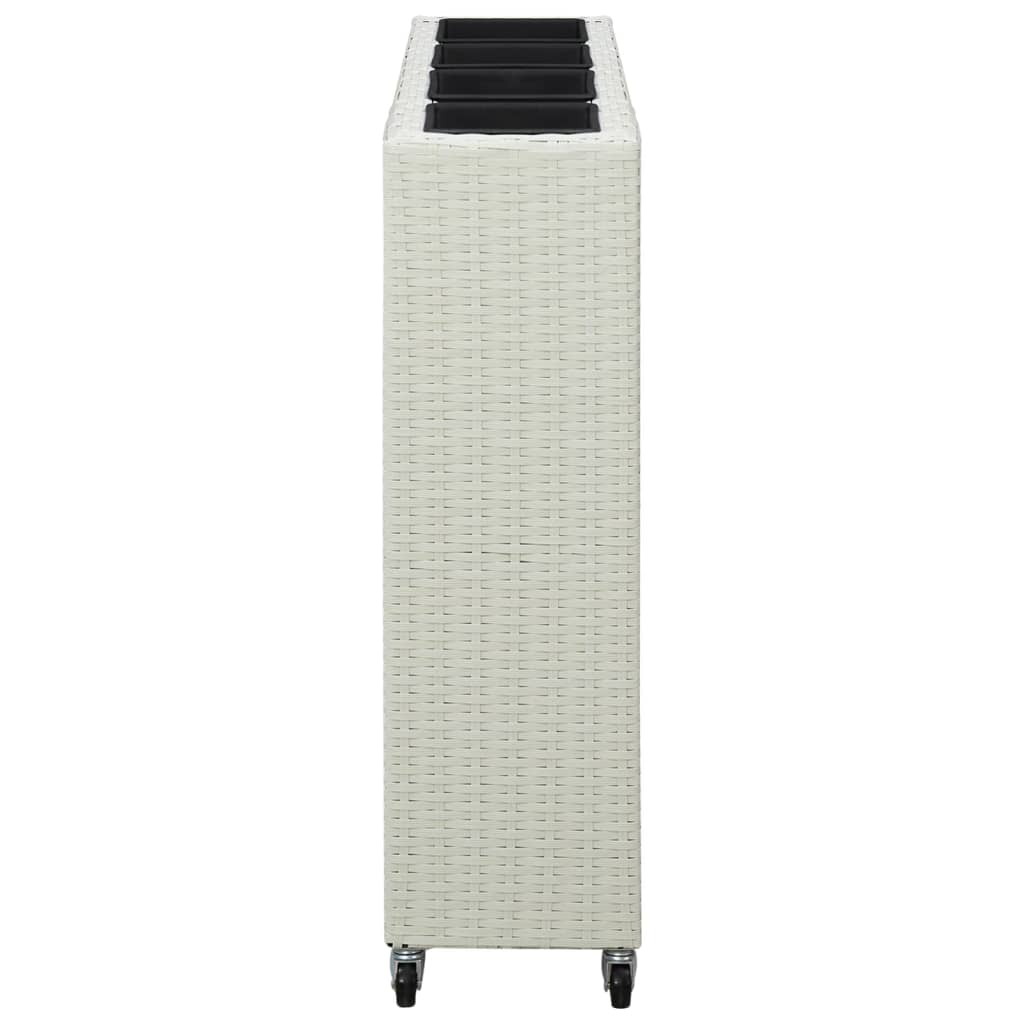 Feita de vime PE durável e resistente à água, esta floreira é um complemento perfeito para o seu espaço ao ar livre. A sua estrutura em trama apertada oferece um acabamento suave e uma excelente estabilidade. Com 4 vasos, pode plantar todos os tipos de plantas e flores. O design com 4 rodas oferece comodidade. Prepare-se para decorar o seu jardim, terraço e varanda com os nossos bonitos vasos!