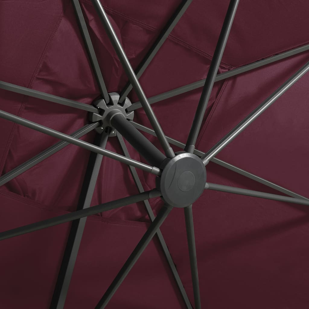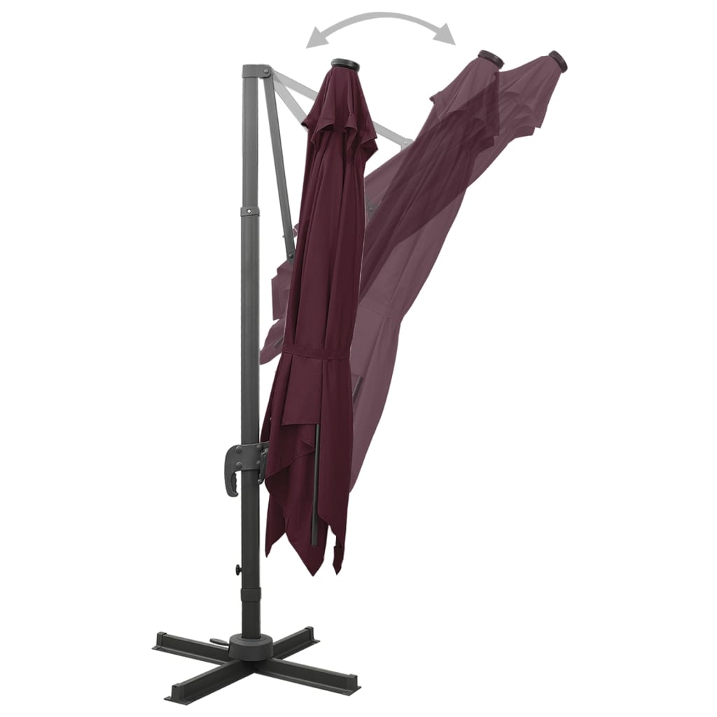 Guarda-sol cantilever c/ poste e luzes LED 300 cm bordô
