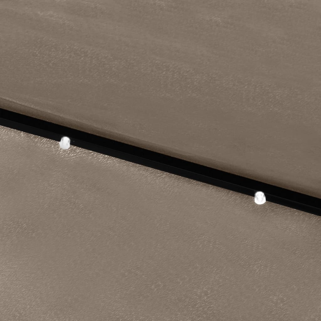 Feito de poliéster com proteção UV e à prova de desbotamento, o guarda-sol de exterior pode proporcionar-lhe uma ótima proteção contra o sol. O poste e as varetas em aço revestido a pó asseguram estabilidade. Graças ao mecanismo de abertura por manivela, o guarda-sol é dobrável e portátil. Pode ser montado num suporte que já possua ou no meio de mesas, se possuírem orifícios. As luzes LED integradas, que são alimentadas pelo painel solar, irão criar um ambiente acolhedor e romântico à noite.