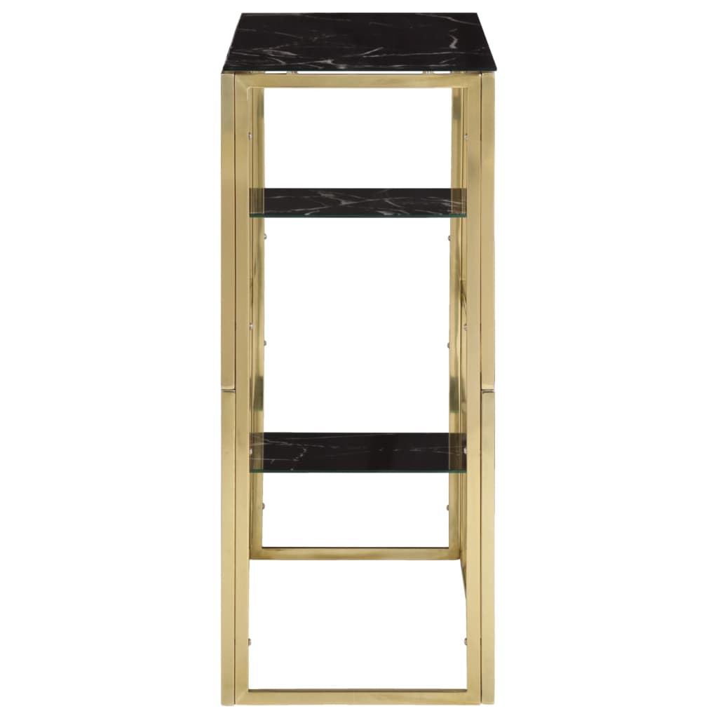 - Material: aço inoxidável, vidro temperado com acabamento em mármore preto