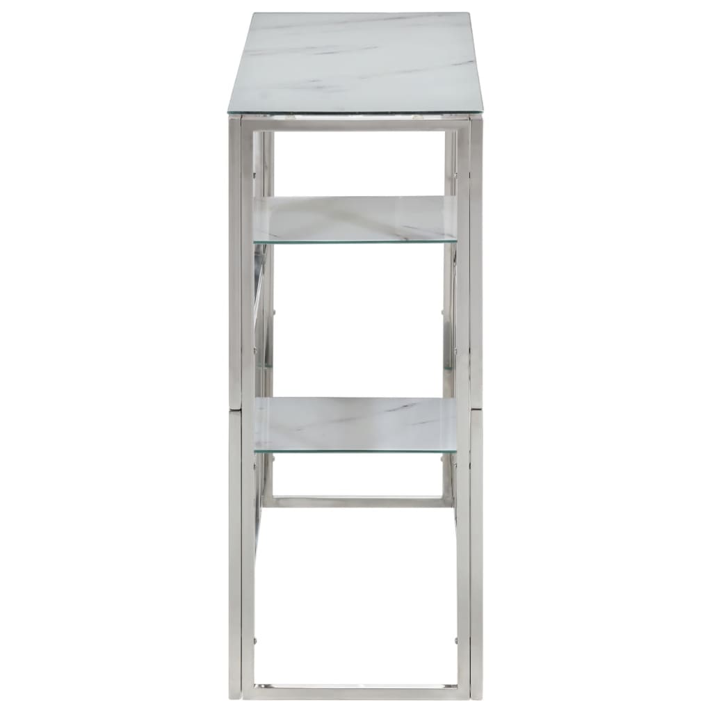 - Material: aço inoxidável, vidro temperado com um acabamento em mármore branco