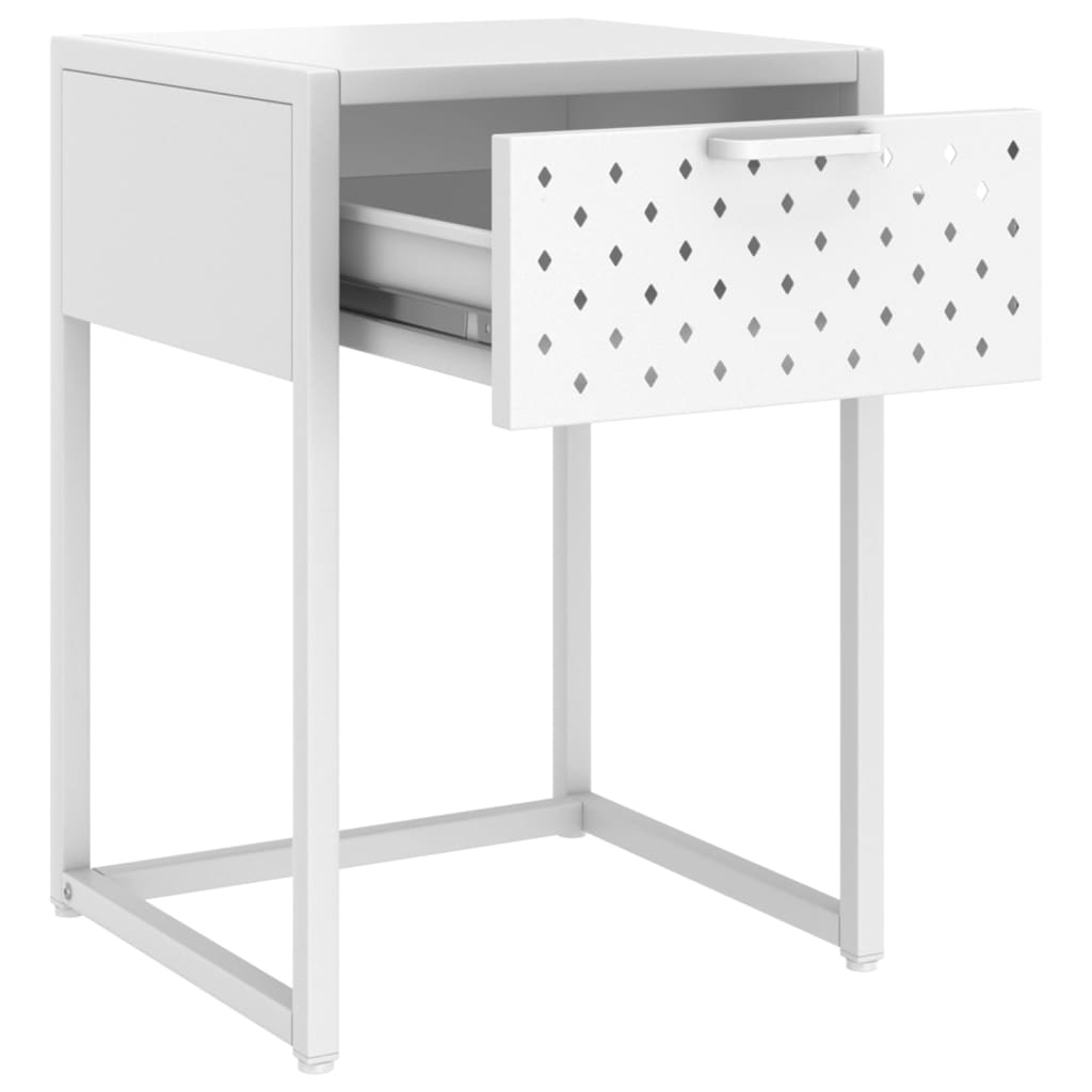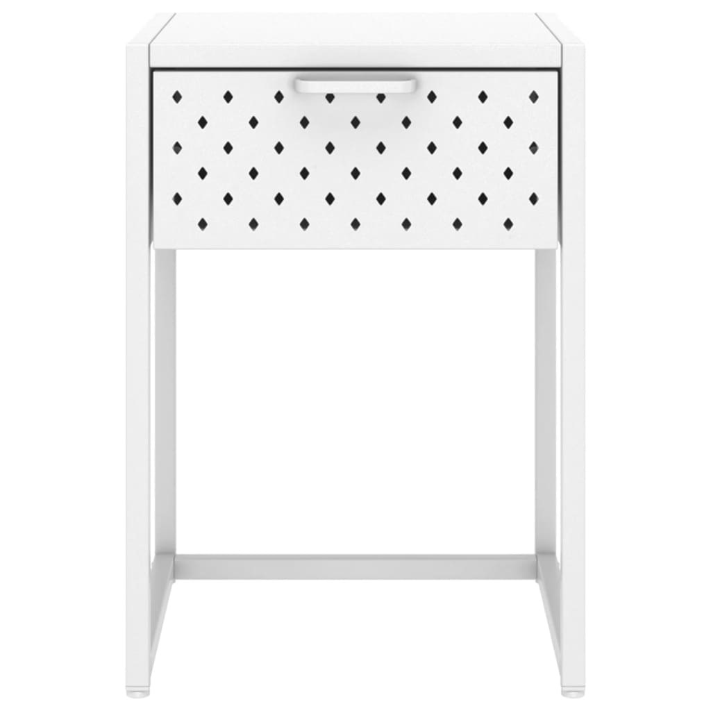 A mesa de cabeceira é feita de aço, tornando-a robusta e durável. O tampo resistente é excelente para colocar um despertador, candeeiro de leitura, livros, etc. A gaveta é ideal para manter todos os tipos de artigos mais pequenos organizados e ao alcance. A gaveta com rolamentos de esferas assegura uma abertura e fecho suaves, mesmo sob uma carga excessiva. Com os niveladores na parte inferior, a mesa de cabeceira também é ajustável em altura.