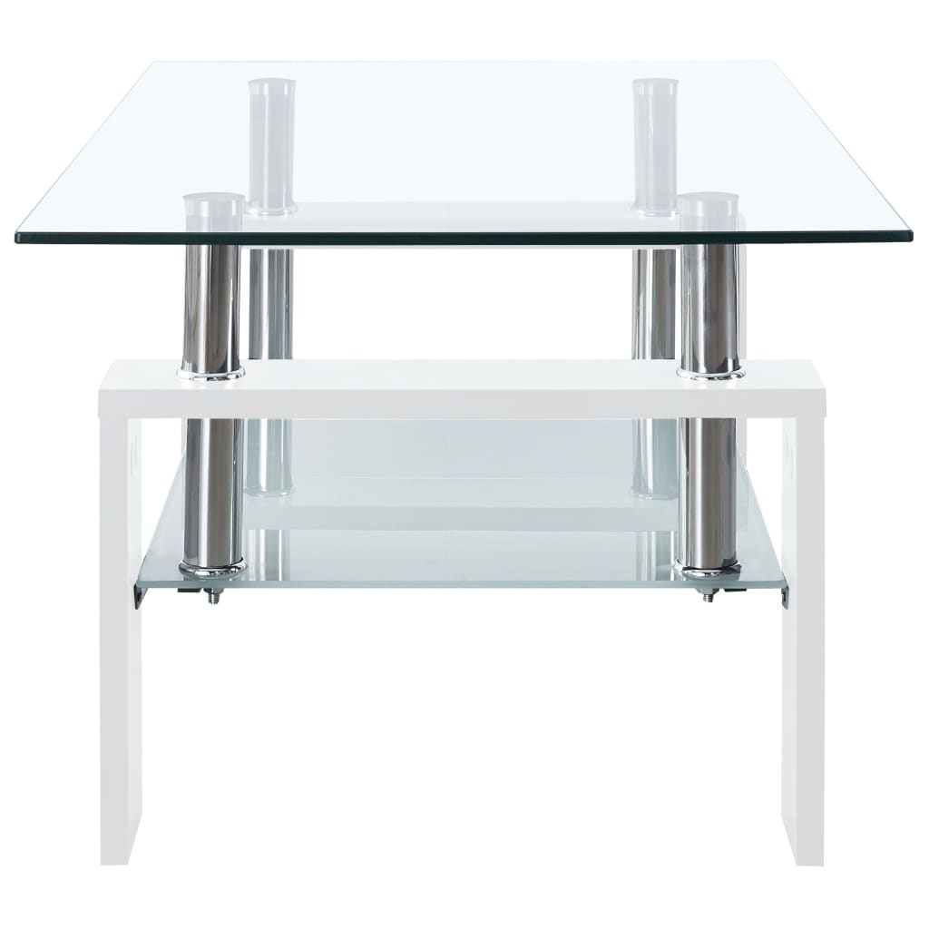 Esta mesa de apoio tem um tampo em vidro temperado e é suportada por pernas de melamina, tornando-a extremamente segura e estável. Graças ao design com 2 níveis, esta mesa de apoio ao sofá fornece-lhe um espaço de arrumação extra e apresenta uma construção robusta. A mesa de apoio é fácil de limpar com um pano húmido.