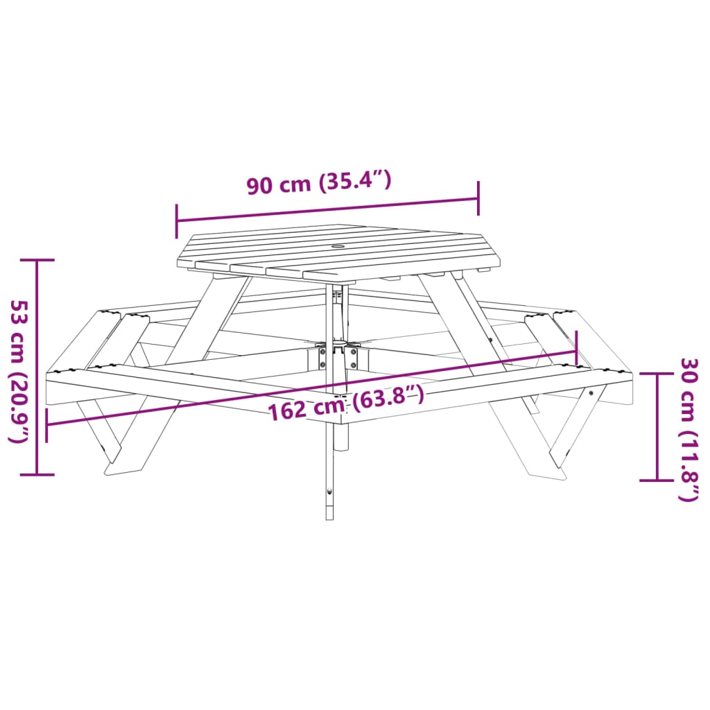 Esta mesa de piquenique é perfeita para pátios, jardins e espaços exteriores, proporcionando um local confortável e convidativo para os seus filhos e os seus amigos relaxarem e desfrutarem.
