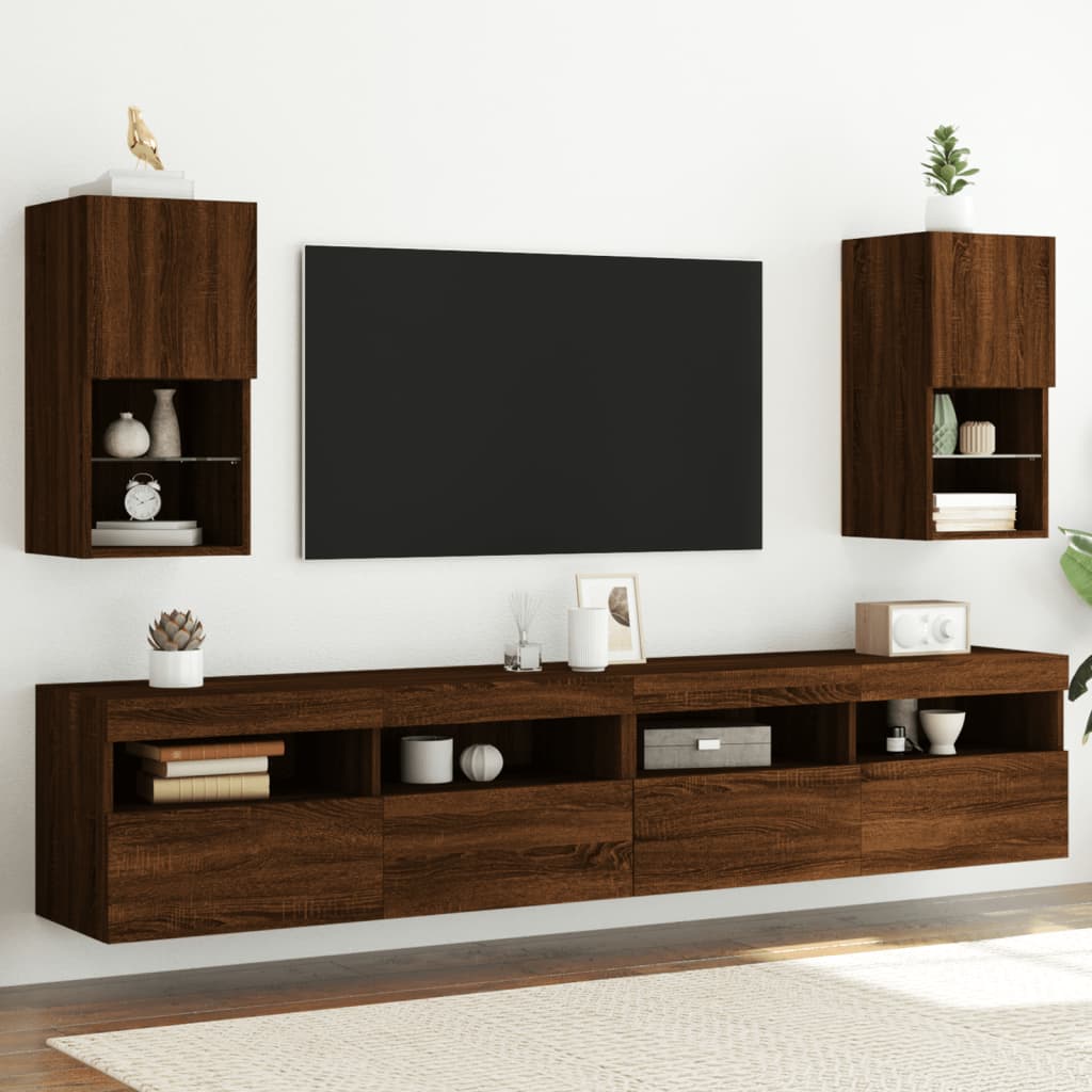 Móveis de TV c/ luzes LED 2 pcs 30,5x30x60 cm carvalho castanho