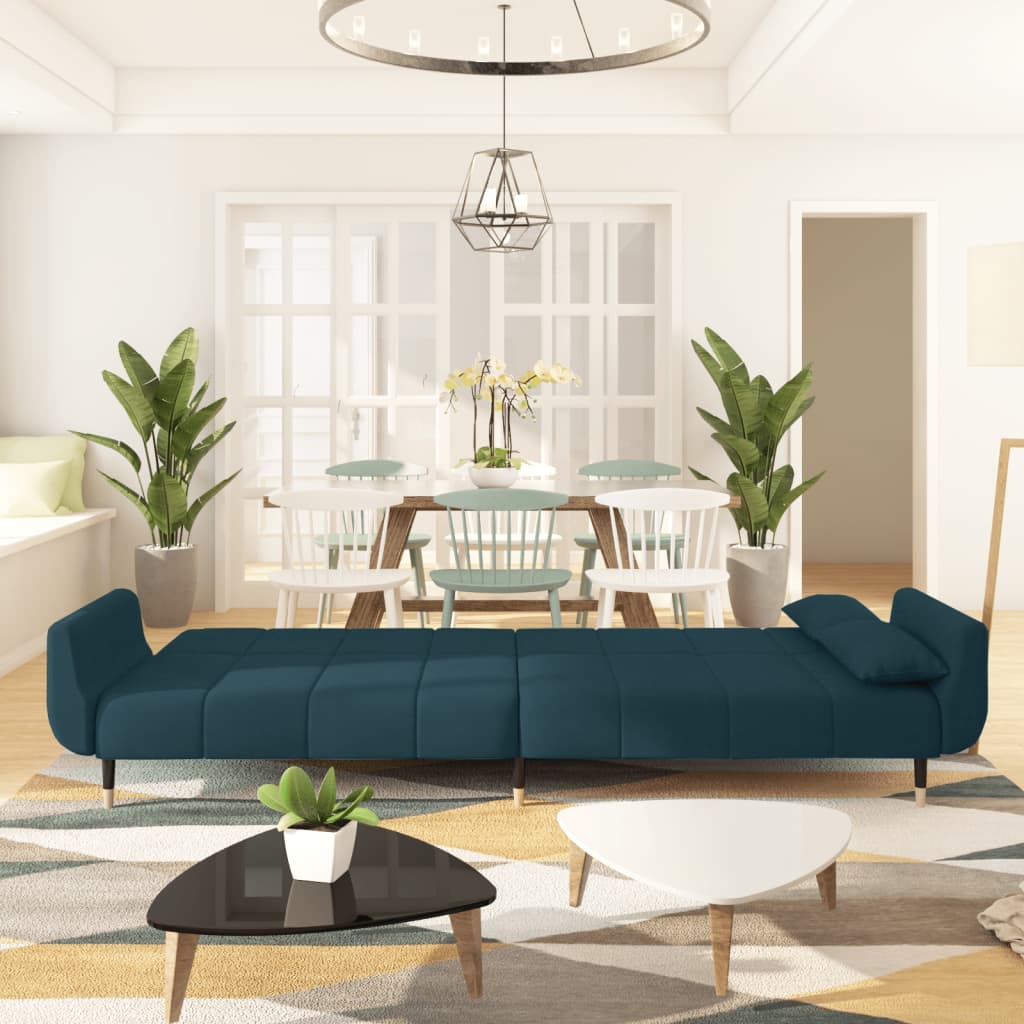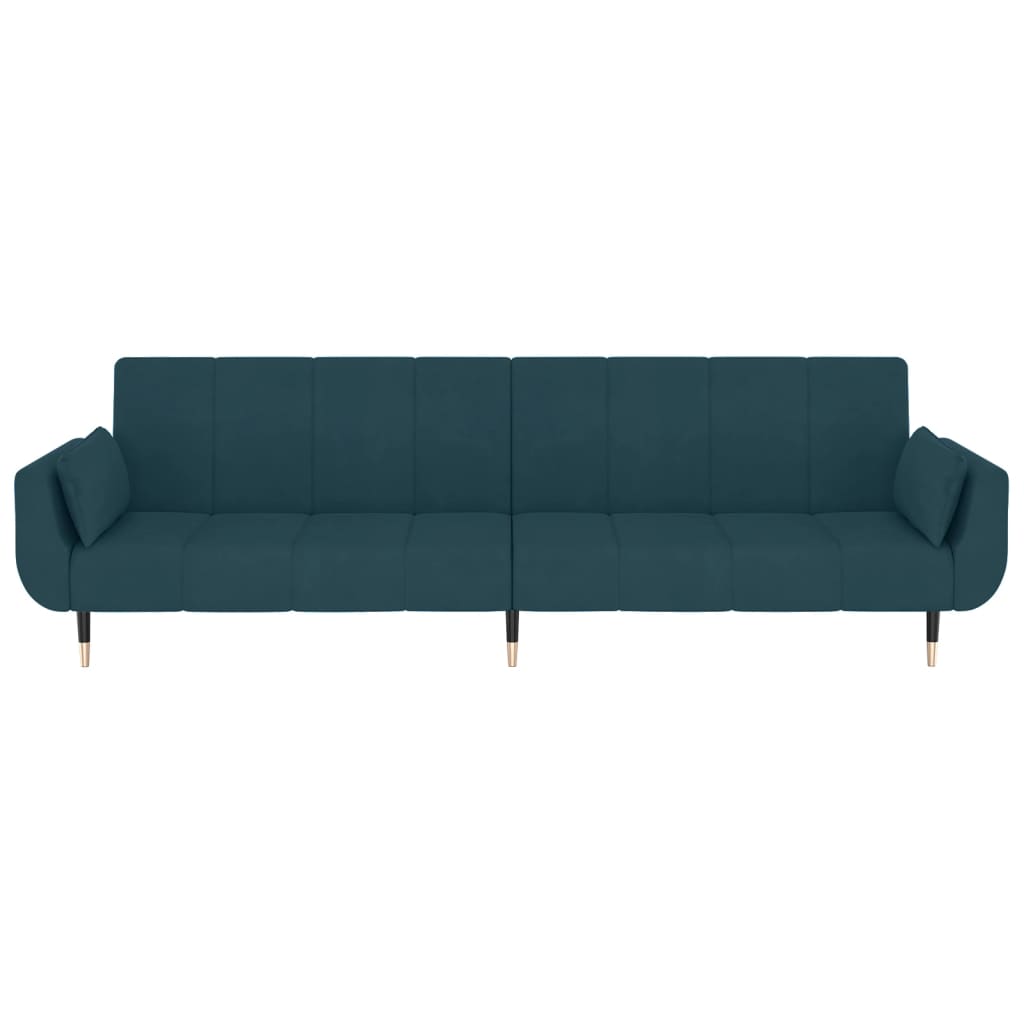 Sofá-cama 2 lugares com duas almofadas veludo azul
