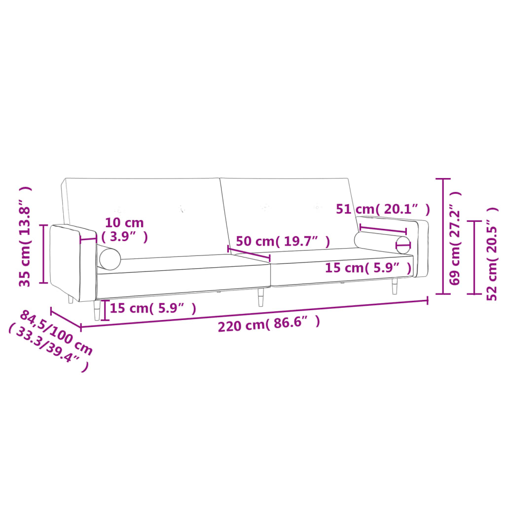 - Experiência de assento confortável: Este sofá-cama é revestido por um veludo macio e confortável. O veludo é um tecido macio e luxuoso que é reconhecido pela sua densa pilha de fibras cortadas uniformemente que proporcionam um descanso suave e relaxante. O tecido de veludo proporciona uma sensação suave e distinta, tornando-o confortável ao toque.