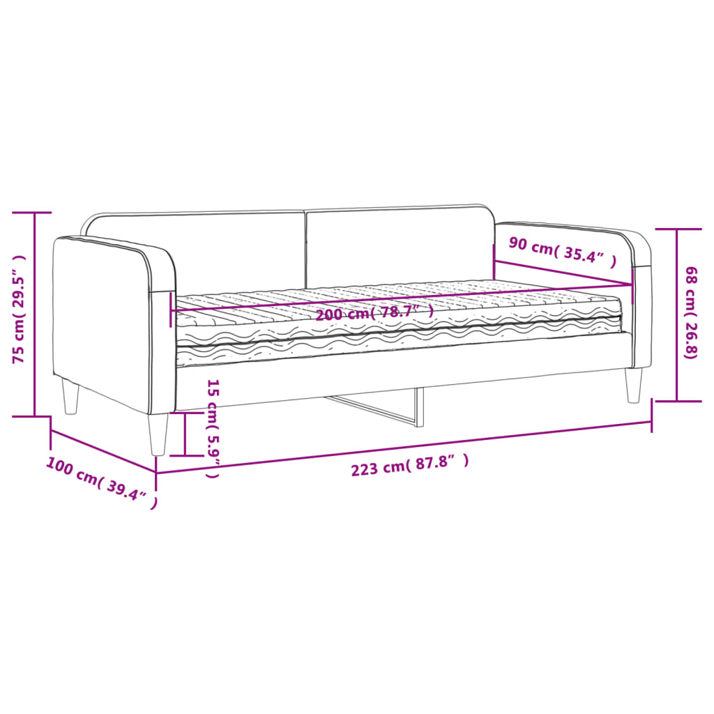 - Dimensões do colchão de espuma: 90 x 200 x 17 cm (L x C x A)