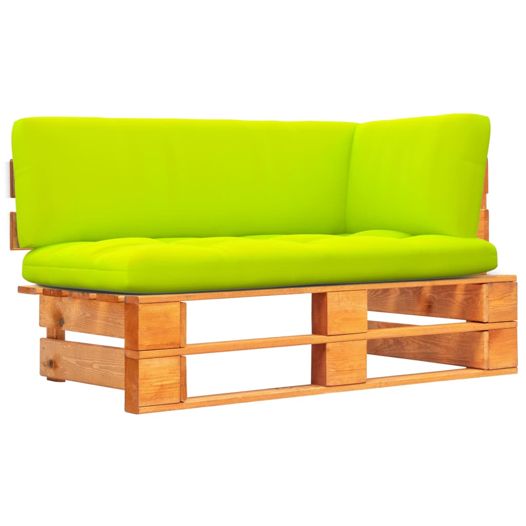 Feito em madeira de pinho impregnada, o assento de canto é durável e resistente às intempéries. Este sofá seccional possui uma construção sólida e requer pouca manutenção. Juntamente com os almofadões incluídos, este sofá de paletes para jardim proporciona o máximo conforto, para si e para os seus convidados. Este sofá de madeira foi especialmente concebido para ser parte de um conjunto lounge, mas também pode ser utilizado como sofá individual. Pode combiná-lo com outros segmentos modulares tais como descansos de pés e sofás de centro, criando o seu conjunto lounge para jardim personalizado!