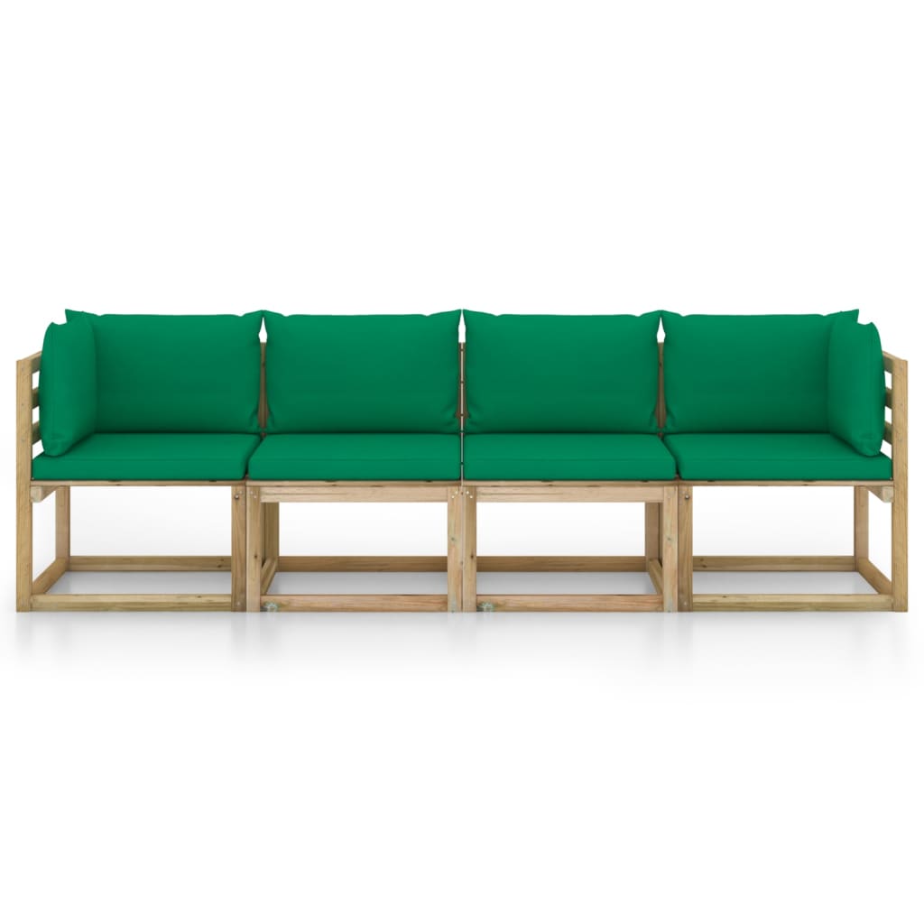 Sofá de jardim com 4 lugares almofadões verde