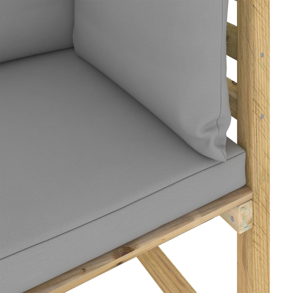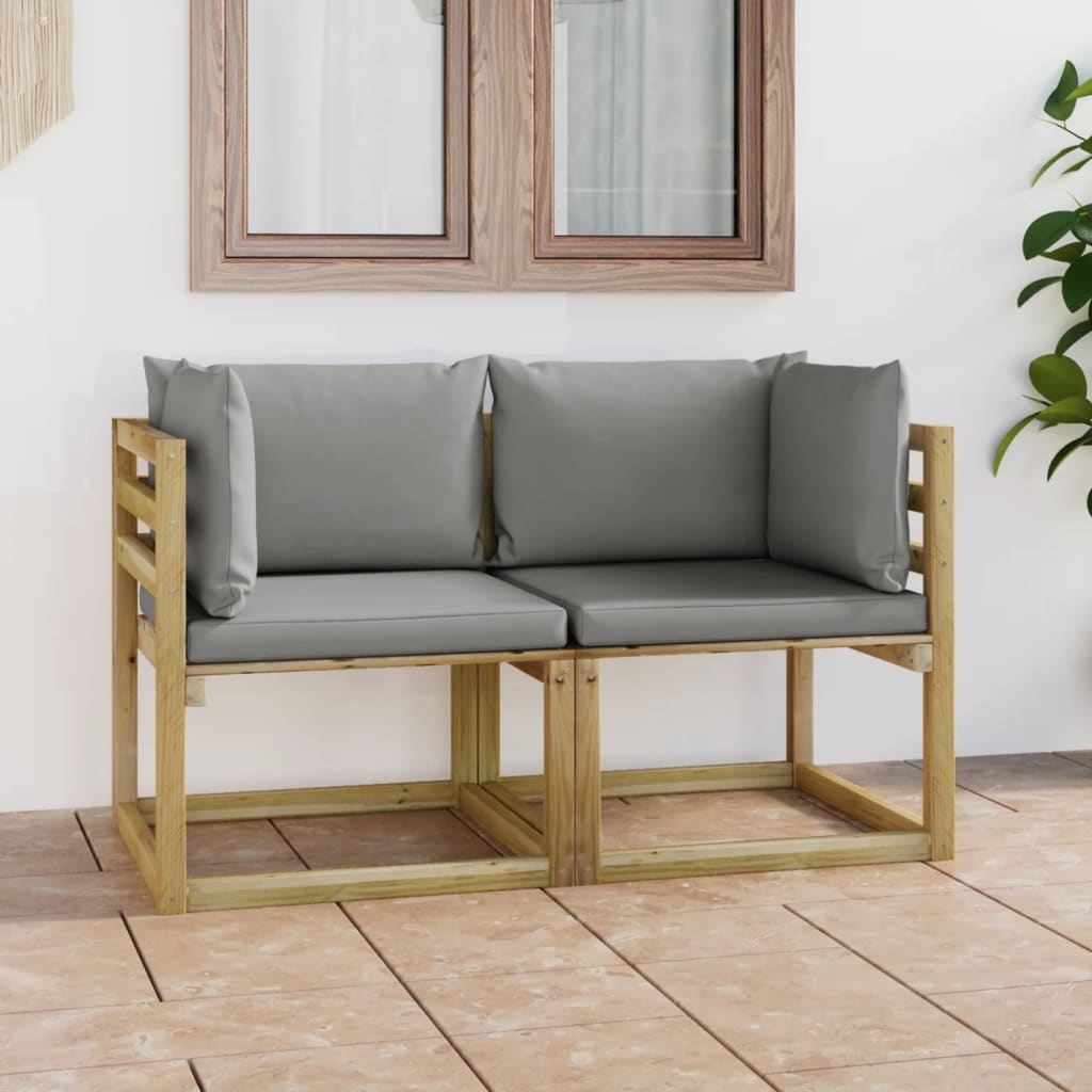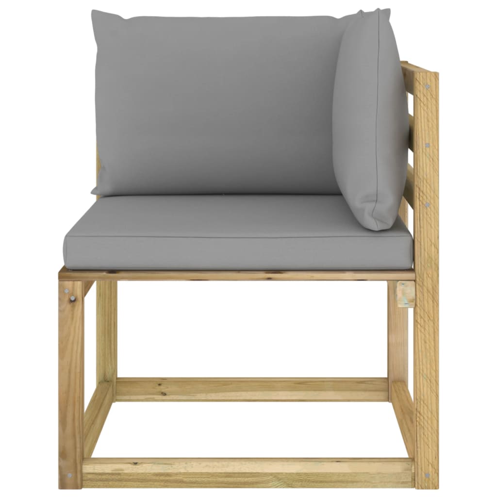O assento de canto é feito de pinho impregnado, tornando-o durável e resistente às intempéries. Os almofadões densamente acolchoados acrescentam o máximo conforto. Este sofá de canto possui uma construção sólida e requer pouca manutenção. O sofá de madeira foi especialmente concebido para ser parte de um conjunto lounge, mas também pode ser utilizado como sofá individual. Pode combiná-lo com outros segmentos modulares, tais como mesas de centro, apoios de pés e sofás de centro para criar o seu conjunto lounge para jardim personalizado!
