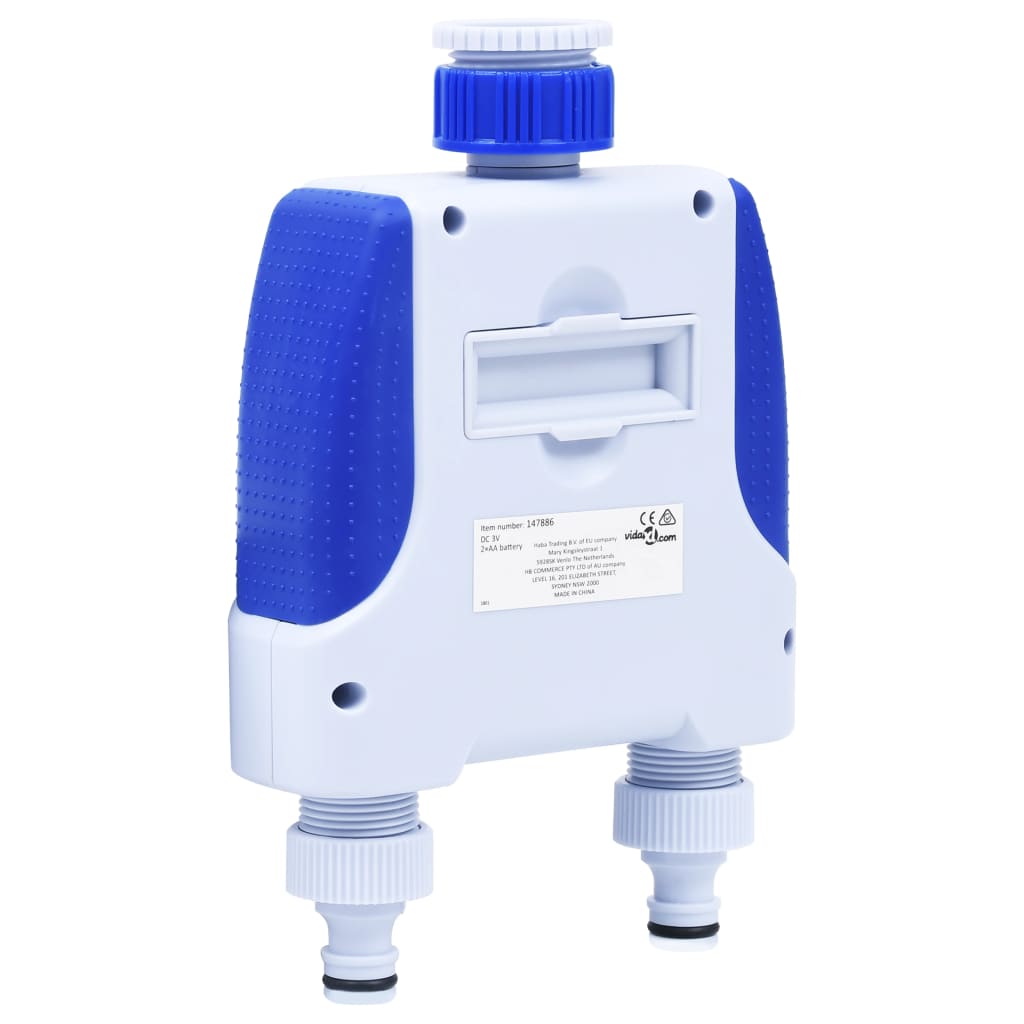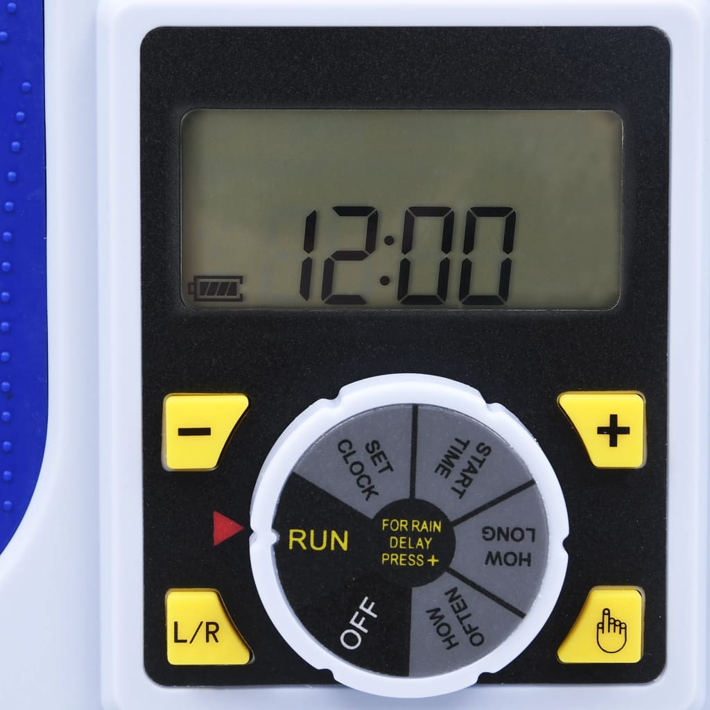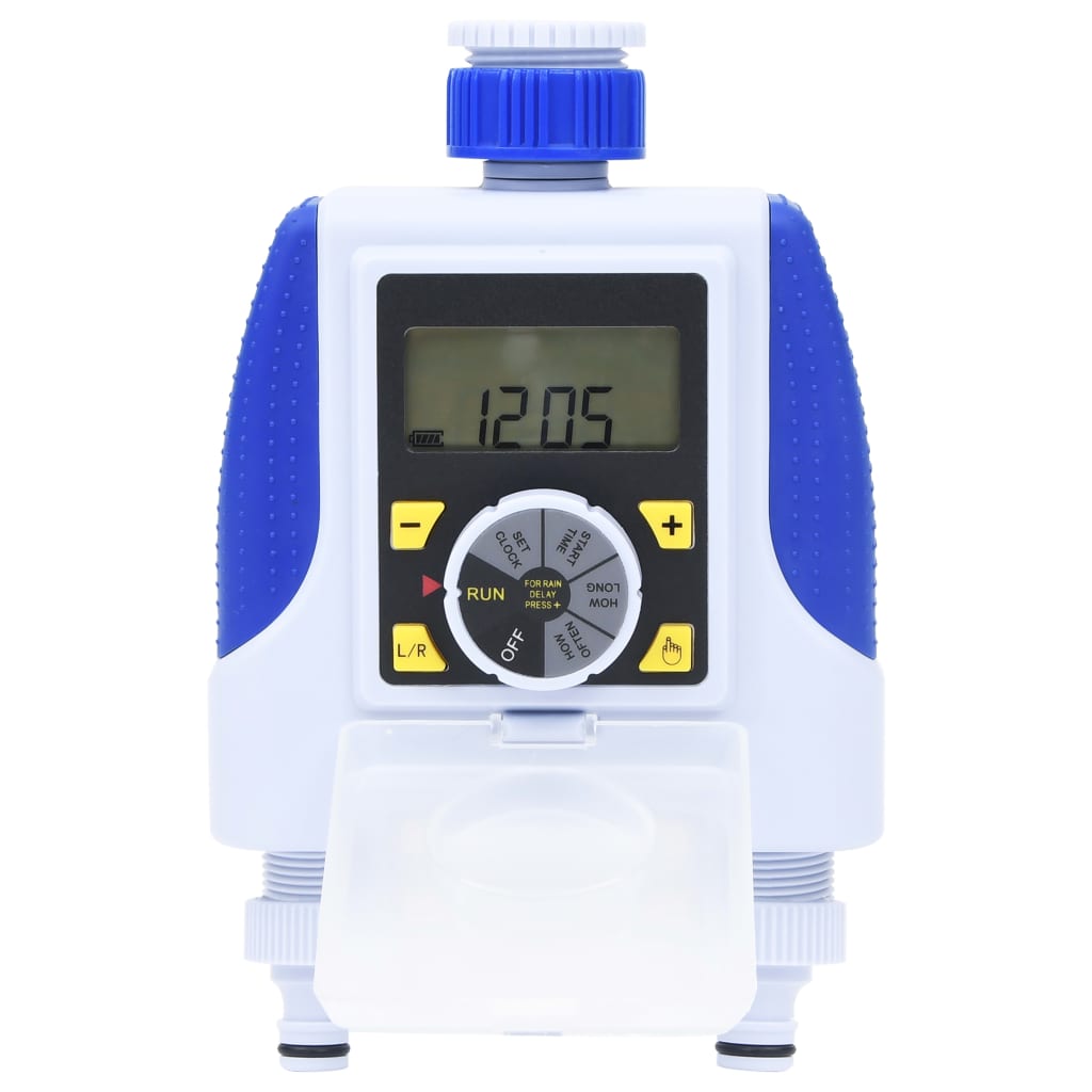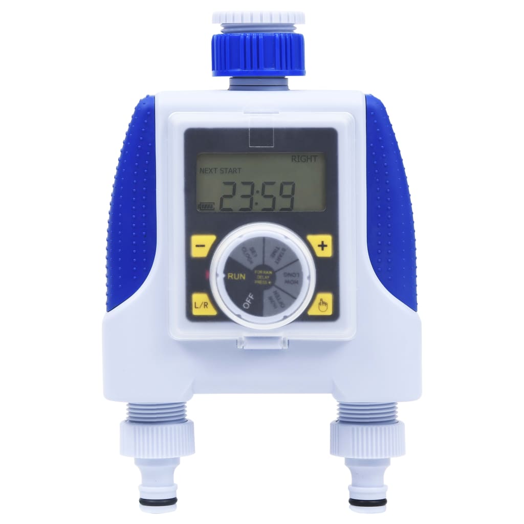É um temporizador de rega digital programável com 2 saídas para torneira que pode ser ligado a qualquer torneira de mangueira de jardim com rosca comum de 26,5 mm. O temporizador oferece um controlo total e maximiza a poupança de água, sem interromper o programa do temporizador. Possui uma configuração de atraso de chuva embutida, bem como controlo manual, para uma maior comodidade. Feito de ABS, este temporizador de água é à prova de água e resistente à corrosão. Assim, garante uma longa vida útil. A tampa protetora contra pó está incluída para o display LCD.