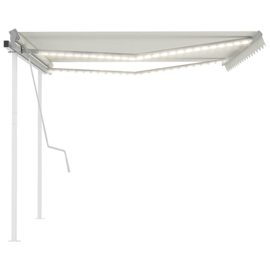 Este toldo para o ar livre foi construído com uma estrutura de alumínio revestido a pó resistente à ferrugem, tornando-o leve, porém robusto. O poste de ferro robusto torna-o estável. O tecido do toldo de pátio é feito em poliéster de alta densidade revestido a PU, que é resistente aos raios UV e à água. O ângulo e a altura podem ainda ser ajustados para atender às suas necessidades específicas. Pode abrir e retrair o toldo suavemente com a longa manivela de mão. As luzes LED alimentadas por energia solar proporcionam ainda uma iluminação que poupa energia durante a noite.