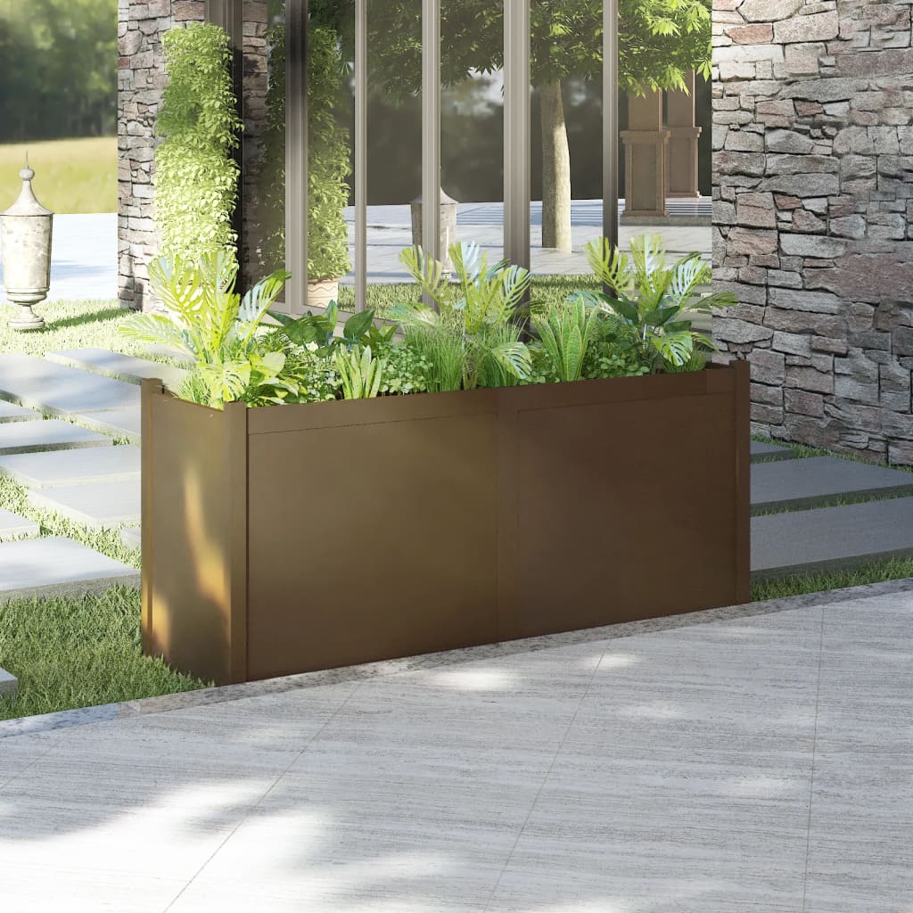 Feito em madeira de pinho maciça, esta caixa para flores é durável e resistente às intempéries, sendo portanto muito prática para utilização ao ar livre durante todo o ano. O vaso de jardim é fundo e largo o suficiente para reter uma grande quantidade de terra, para além de oferecer um amplo espaço para as suas plantas.