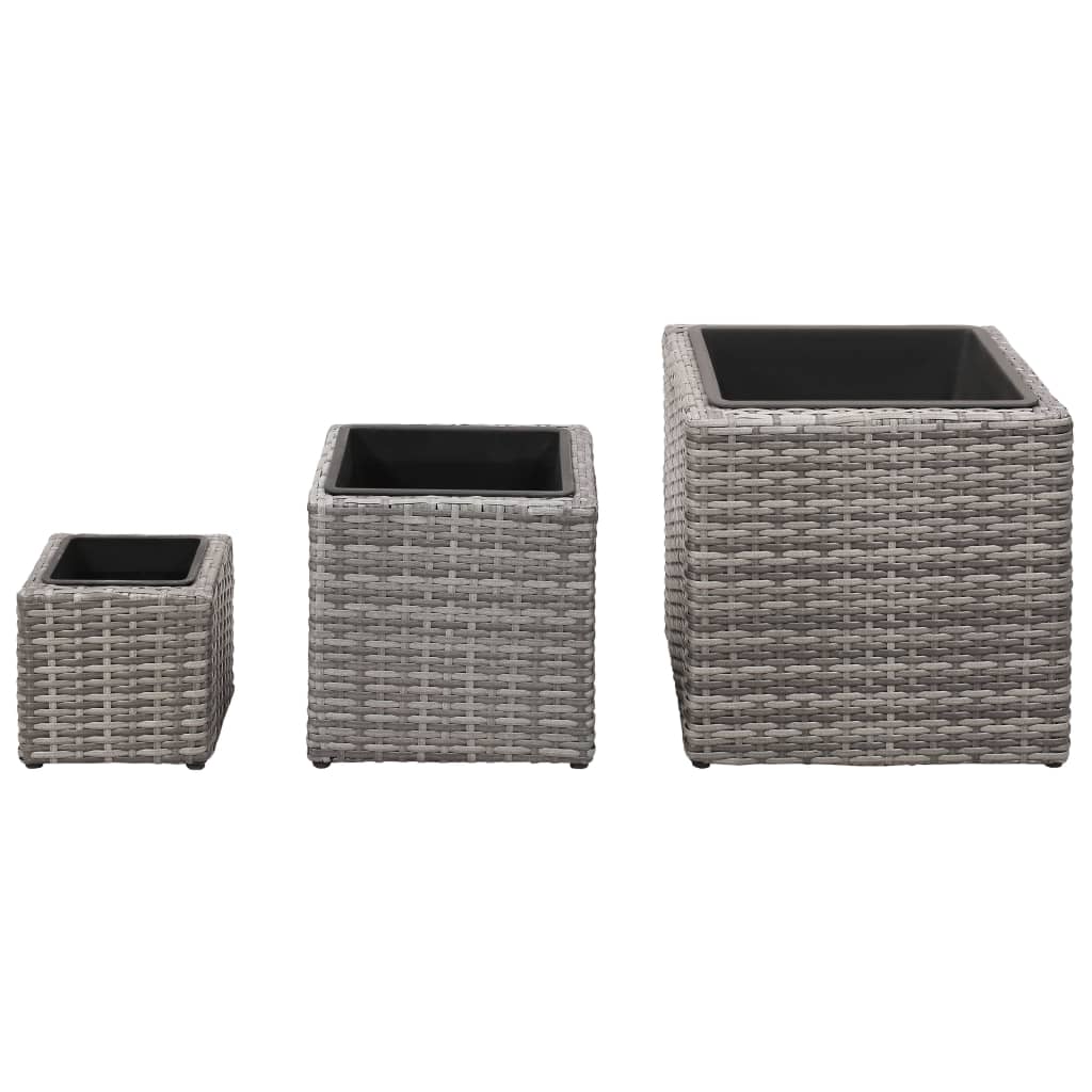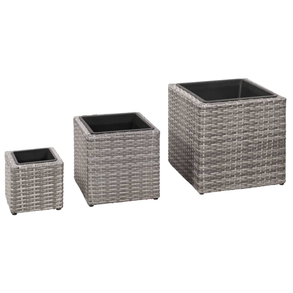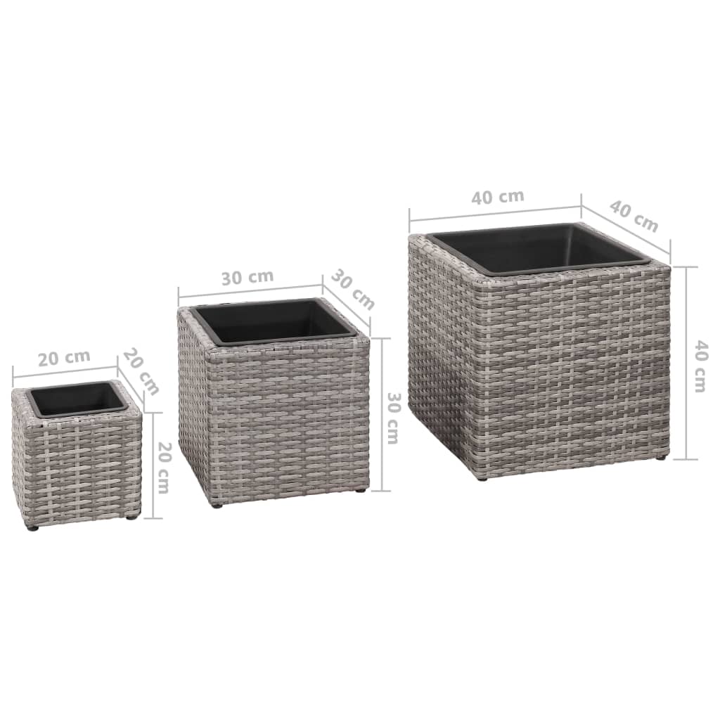 Este bonito conjunto de vasos/floreiras de jardim é composto por 3 vasos externos em vime e 3 vasos plásticos internos removíveis, de diferentes tamanhos. Feitos de vime impermeável durável, estes vasos serão complementos perfeitos para o seu espaço ao ar livre.